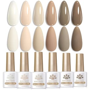 Esmalte de gel BORN PRETTY de 6 cores - creme branco, nude, cáqui, marrom e chocolate Kit de esmalte em gel Soak Off Nail Art Manicure DIY para casa e salão de beleza