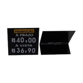 Etiqueta para exposição de preços com placas magnéticas moduláveis e práticas para sua vitrine. Conheça os quatro modelos grandes e pequenos, com alfinetes e com bases para prateleiras.