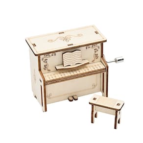 Material: madeira Tamanho: 6,5 × 4 × 6,5 cm Peso: Kit de aprendizagem musical NoneStem — Caixa de música de piano de madeira projetada para que as crianças explorem experimentos científicos, mecânica sonora e criatividade por meio de uma montagem divertida. Design de caixa de música com manivela — apresenta um formato clássico de piano com alça giratória, produzindo melodias enquanto ensina às crianças como o som mecânico é gerado. Atividade de montagem DIY — Inclui peças de madeira pré-cortadas, banco de piano e design de livro de música para construção prática, melhorando as habilidades de coordenação e resolução de problemas. Educacional e divertido — Perfeito para projetos em sala de aula, feiras de ciências e aprendizado STEM em casa, combinando arte, engenharia e música em uma atividade interativa. Para crianças de 8 anos ou mais — Recomendado para meninos e meninas que gostam de criar kits científicos, oferecendo um projeto educacional significativo que combina brincadeira com aprendizado.