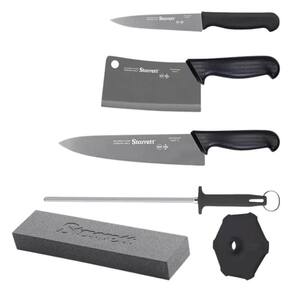 Kit De Facas Chef Com Cutelo Preto 6 Peças Bkk-6B1 Starrett O Kit de Facas Chef Com Cutelo Preto 6 Peças BKK-6B1 - Starrett, é reconhecido pela qualidade e precisão dos seus produtos, Indicado para açougues, frigoríficos, supermercados e profissionais da indústria de alimentos em geral uma nova e excelente opção para o corte de carnes. Descrição do Produto: Lâminas em aço inoxidável. Cabos ergonômicos e injetados em polipropileno com Sanitized que proporciona melhor conforto. Lâmina com acabamento polido. Identificação com gravação a laser no corpo da lâmina. Liga de aço especial, com alta dureza proporcionando maior vida útil. Certificação NSF. Vantagens e Características: Alta durabilidade. Proteção antimicrobiana Sanitized nos cabos evita proliferação de bactérias . Maior segurança. de procedência e rastreabilidade N de série exclusivo . Não mancha e não oxida. Ângulo exclusivo de afiação permitindo cortes com mais impacto. Modo de Usar: Sempre que utilizar as facas profissionais Starrett, segure-a com a mão totalmente fechada envolvendo o cabo. A limpeza da faca deve ser feita somente com água corrente e sabão neutro, nunca com produtos oxidantes ou esponjas de aço. Opte sempre pela face suave das esponjas. A esterilização da faca pode ser feita com a imersão do produto em água quente a 85C por no mínimo 5 minutos e máximo de 20 minutos, conforme decreto n 1812 de 08/02/1996. Sempre enxugue antes de guardar. Composição do Kit Chef: 01 Cutelo de 150mm/6 polegadas. 01 Faca Refile de Mesa de 250mm/10 polegadas. 01 Faca Refile de Mesa de 150mm/6 polegadas. 01 Chaira de 250mm/10 polegadas. 01 Protetor de Chaira. 01 Pedra de Afiar 200x50x25/8x2x1. Referência: BKK-6B1. Cód. De Fábrica: BKK-6B1. Marca: Starrett. Marca: Não Informado Ean: 7891265018472