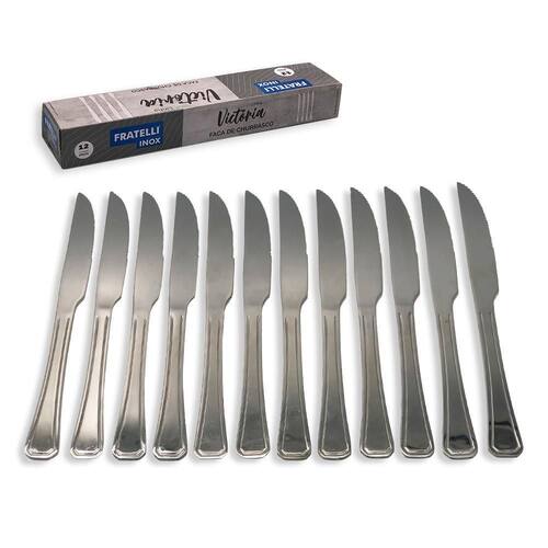 Kit de Facas de Churrasco em Aço Inox 12 Peças Conjunto de Facas de Churrasco - Elegância e Praticidade na Sua Cozinha