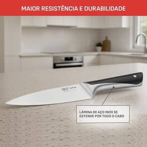 A lâmina de aço inox se estende por todo o cabo, proporcionando mais durabilidade e resistência para a faca. Além disso, o peso balanceado proporciona mais conforto e segurança no manuseio. Tudo isso com um design moderno e ergonômico, pensado para se adaptar perfeitamente à sua mão.