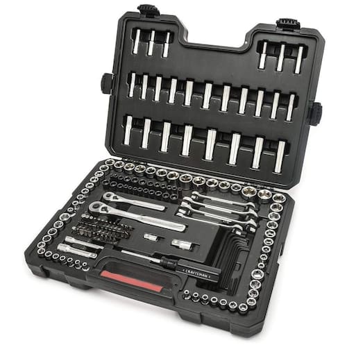 Construção de aço de liga fundida resistente cromada Inclui 79 soquetes de 6 pontos em tamanhos de unidade de , e 61 bits de chave de parafusos e porcas 14 chaves sextavadas 2 catracas de liberação rápida 2 Barras de extensão 2 adaptadores 4 chaves e 1 alça magnética Mecanismo de liberação rápida em catracas para interruptores de soquete rápido Caixa resistente a ferrugem e amassados para longevidade garantida Craftsman Lifetime Warranty Marca: Não Informado
