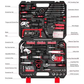CONJUNTO DE FERRAMENTAS ABRANGENTE Ferramentas essenciais de 198 peças estão em uma caixa martelo de garra, conjunto de chave de fenda, alicate, descascador de fios, chaves combinadas, chave catraca, soquetes, chaves sextavadas, mini serra, fita métrica e bits de driver etc. Todas as ferramentas atender ou exceder o padrão ANSI. ALTA QUALIDADE A maioria das ferramentas é forjada em aço e acabada em cromo de alto polimento. Durabilidade e anticorrosão, este conjunto de ferramentas durará anos sob uso normal. CAIXA DE ZENAMENTO RESISTENTE As ferramentas são zenadas ordenadamente em um estojo durável. Seu interior e organizador robustos mantêm as ferramentas no lugar para fácil zenamento e portabilidade. Mantenha os s, limpos, organizados e fáceis de encontrar. AMPLAMENTE O kit de ferramentas multifuncional contém as ferramentas mais necessárias para a maioria dos pequenos reparos e projetos básicos em casa. Perfeito para projetos de bricolage em casa, incluindo montagem de móveis, iluminação, marcenaria, reparo de encanamento e muito mais. Handyman, reparadores, trabalhadores da construção civil, mecânicos, oficinas etc. também um ótimo conjunto de ferramentas para ter em casa, garagem e oficina Marca: Não Informado