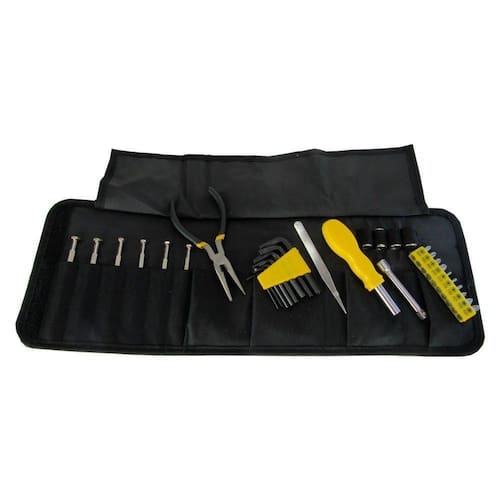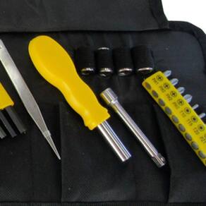 Kit de Ferramentas 32 Peças 5490 - Titanium - Jogo de ferramentas com 32 peças é ideal para diversas aplicações diárias, além de ser extremamente útil para trabalhos profissionais ou hobby, seja na oficina, ou na própria residência.Composto por ferramentas robustas e com alta qualidade, sendo fabricadas em aço especial, garantindo maior vida útil e resistência.Características Gerais do Produto: Peso Gr : 2300g Dimensões: 5 X 22 X 32Acompanha o produto: 1 Estojo 4 Soquetes 1 Extensor 8 Chaves Allen 1 Pinça 1 Chave encaixe sextavado 1/4 1 Mini alicate bico longo 6 Chaves de precisão 10 BitsGarantia: 3 meses