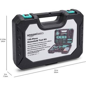 Kit de ferramentas domésticas Amazon Basics com estojo de armazenamento, 142 peças, turquesa, 13,39 x 9,25 x 2,95 polegadas