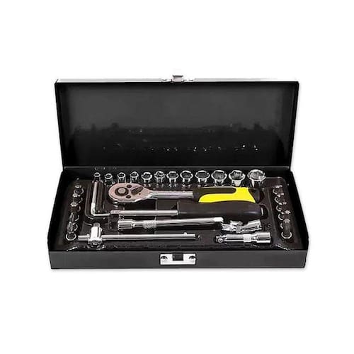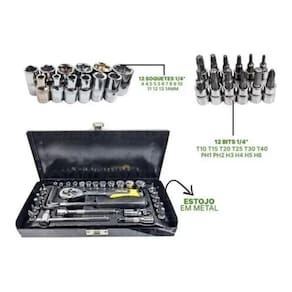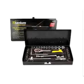 Seja Bem Vindo a DD Máquinas!Os produtos da Titanium são ideais para diversas aplicações diárias, além de ser extremamente úteis para trabalhos profissionais ou uso convencional na própria residência. Máquinas, acessórios, equipamentos e ferramentas robustas e com alta qualidade, fabricadas em aço especial, garantindo maior vida útil e resistência.Jogo de Ferramentas com 33 confeccionadas em aço cromo vanádio que garante alta resistência e durabilidade as peças. Ideal para realizar diversos trabalhos e efetuar manutenções diversas. Possui maleta plástica de alta qualidade, garantindo a resistência contra quedas além de manter as ferramentas organizadas.Itens Incluso:1 Jogo de Ferramentas com 33 Peças com Maleta.Especificações Técnicas:Conteúdo da Embalagem:12 Soquetes 1/4":4, 5 , 5.5, 6, 7, 8,9,10, 11, 12, 13 e 14mm12 Bits para Soquetes 1/4":T10, T15, T20, T25, T30, T40, PH1, PH2, H3, H4, H5 e H63 Chaves Hexagonais:1.5, 2 e 2.5mm1 Chave Catraca 1/4"1 Chave para Soquete 1/4"2 Barras de Extensão 1/4"50 e 100mm1 Junta Universal 1/4"1 Cabo de Força em T /4"Estojo de Metal *Imagens Meramente Ilustrativas.Todas as Informações divulgadas são de responsabilidade do Fabricante/Fornecedor.Tome cuidado ao manusear e utilizar o aparelho.