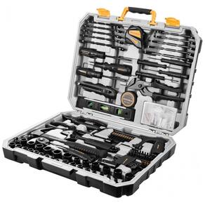 ALTA QUALIDADE E PADRÕES Forjado a partir de soquetes de aço cromo vanádio de alta resistência e aço de alta qualidade com uma camada de óxido na superfície, que possui maior resistência e garante longevidade. Todas as ferramentas atendem ou superam os padrões críticos ANSI. ACESSÓRIOS COMPLETOS Ricos acessórios de ferramentas atualizadas colocados neste conjunto de ferramentas. Este kit de ferramentas para casa inclui chaves combinadas, chave de fenda Philips, soquetes de unidade, chave ajustável, bits de chave de fenda, alicate de Lineman e assim por diante. Este conjunto completo de caixa de ferramentas atende perfeitamente às necessidades diárias Marca: Não Informado