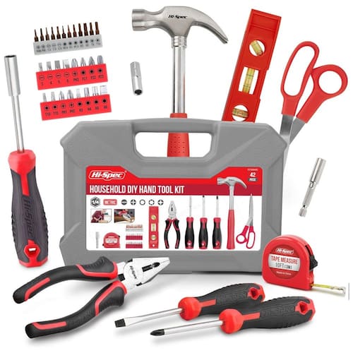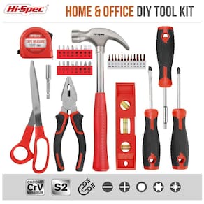 FERRAMENTAS DIY INICIAIS Para os trabalhos de reparo diários de bricolage, o conjunto de kits de ferramentas de bricolage de alta especificação oferece uma seleção das ferramentas manuais mais populares disponíveis. Para a casa ou local de trabalho, seu acabamento de cores vivas torna este conjunto atraente para apresentar para fixação e manutenção prática DIY RÁPIDO Comece a trabalhar agora com o conjunto de kits de ferramentas DIY Hi Spec Household. Desde a montagem de móveis e flat packs, aparafusamento, rosqueamento de pregos, medição de ambientes, puxar e cortar fios, instalação de acessórios e acessórios, até pendurar quadros na parede. Tudo em um estojo de transporte conveniente e portátil FERRAMENTAS MANUAIS MAIS USADAS Alicate para agarrar e cortar, chaves de fenda de tamanho normal, um martelo multiuso, uma fita métrica retrátil, um nível de bolha para obter linhas retas, tesoura de cozinha e cabo de chave de bits. As alças revestidas de borracha macia e de tamanho robusto oferecem melhor aderência e retenção PARAFUSO Gire todos os tipos de parafusos com a alça de chave 2 em 1 Bit. Seu porta bits de dupla face alterna entre bits de tamanho normal para utensílios domésticos e eletrodomésticos grandes, e os pequenos bits de precisão para eletrônicos, gadgets e itens delicados, como óculos e pequenos brinquedos BITS E MAIS Escolha entre as brocas de 28 peças os diferentes tamanhos e tipos para parafusos de tamanho normal e de precisão e use uma furadeira elétrica com as brocas de tamanho normal adicionando o adaptador de broca. Encontre um prático clipe de chaveiro com mosquetão e abra refrescos com o mini abridor de garrafas após um dia difícil de bricolage Marca: Não Informado