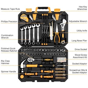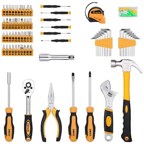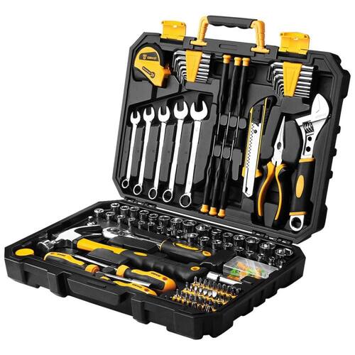 ALTA QUALIDADE E PADRÕES Forjado em aço de alta qualidade e com acabamento em cromo de alto polimento, resistência, durabilidade, proteção anticorrosiva. Todas as ferramentas atendem ou excedem os padrões críticos ANSI INCLUI Acessórios ricos de ferramentas atualizadas colocadas neste conjunto de ferramentas. Inclui chaves combinadas, alicate de ponta longa, catraca de liberação rápida polida, chave ajustável, martelo de garra rasgada, régua de fita métrica, soquetes de transmissão e muito mais KIT DE FERRAMENTAS COMPLETO PARA DOMÉSTICOS Contém ferramentas necessárias para a maioria dos pequenos reparos e projetos básicos de bricolagem pela casa. Perfeito para faz tudo, reparadores, mecânicos, oficinas etc. Também é um ótimo conjunto de ferramentas para ter em casa, na garagem e na oficina FÁCIL DE CARREGAR E ZENAR Alojado em um prático estojo moldado por sopro para fácil zenamento e portabilidade da ferramenta. Seu interior robusto e organizador mantém as ferramentas no lugar PROJETO DE GRANDE ORGINALIDADE A caixa preta torna o resistente à sujeira. O design em forma de diamante torna o único e moderno. Tamanho básico da caixa do kit de ferramentas 38 x 27 x . Peso líquido 4 kg Marca: Não Informado