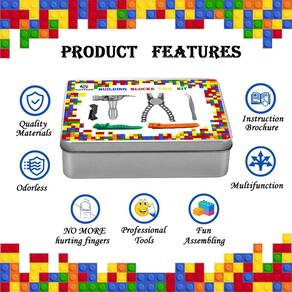 SIOYTOER Kit de ferramentas para blocos de montar acessórios LEGO, ferramentas clássicas separadoras de tijolos compatíveis com LEGO & Technic, alicates de martelo multifuncionais, pinças ajustáveis, caixa de armazenamento de tijolos, protetores de dedo em caixa de latão. - Conjunto de ferramentas prático e profissional. Este kit de ferramentas de blocos de construção atualizado é especialmente projetado para os amantes de blocos de construção de brinquedos, e é compatível com LEGO & Technic e tijolos de construção da maioria das principais marcas. O conjunto completo vem com uma caixa de lata forte, incluindo 1 martelo multifuncional, 1 alicate de tijolo, 1 par de pinças, 5 separadores de tijolos para blocos clássicos LEGO & Technic e mini tijolos de diferentes marcas, 1 caixa de armazenamento ajustável, 5 protetores de dedo com tamanhos diferentes. Todo o conjunto tornará a montagem e desmontagem dos seus blocos de montar muito mais rápida e eficiente. - Materiais seguros e de qualidade premium: feitos de materiais de alta qualidade como plástico ABS, aço inoxidável, liga de alumínio e silicone, nossas ferramentas de blocos de construção de montagem e desmontagem são inodoras, inofensivas, sólidas e duráveis, super seguras para crianças e adultos usarem. A caixa de lata da embalagem é forte e ótima para armazenar essas ferramentas. - Alicate multifuncional de martelo e tijolo: o martelo e o alicate têm protetores de silicone pela cabeça, protegendo os tijolos ou blocos de qualquer possível dano. O martelo é feito de duas peças (conectar ou desconectar com o parafuso cruzado) com diferentes funções para ajudar a instalar ou remover os blocos. Os alicates podem separar tijolos com diferentes tamanhos ou formas rapidamente - 5 separadores de bloco e pinças: as pinças com alça no comprimento adequado ajudarão você a escolher peças pequenas ou tijolos facilmente para a montagem de tijolos. Existem 5 separadores de tijolos com diferentes cores e formas, eles podem funcionar para blocos de tamanho regular e os pequenos são especialmente utilizados para separar mini blocos quando você precisar desmontar - 5 protetores de dedos e caixa de armazenamento ajustável: você pode ter sofrido de dores na ponta dos dedos com a construção de tijolos de brinquedo por um longo tempo, aqui os protetores de dedo feitos de silicone trarão a você um toque confortável e uma montagem de blocos feliz sem a dor. A pequena caixa de armazenamento pode ser ajustada para diferentes tamanhos e compartimentos, tirando ou colocando as pequenas fichas de separação, para que você possa classificar os tijolos por sua forma ou cores para cada passo de montagem. - Boa opção de presente e serviços: todo o kit de ferramentas vem com uma caixa de lata bonita e forte com instruções do usuário (sem garantia de versão em português). Pode ser uma ótima opção de presente para você, famílias e amigos que amam blocos de montar de brinquedo. Todo este conjunto de ferramentas certamente fará com que eles se divirtam e alegram em blocos de construção. Esperamos que você esteja satisfeito com nossos produtos, sinta-se à vontade para entrar em contato conosco para quaisquer perguntas possíveis que você possa encontrar para a compra. Sempre encontraremos a melhor solução e sua confiança e apoio são muito importantes para nós.