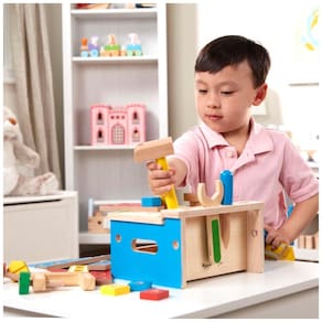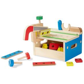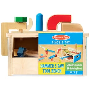 Este conjunto de construção de madeira é composto por 32 peças que incluem pregos de madeira, parafusos e painéis de madeira. As crianças podem seguir os projetos incluídos para criar um animal, uma casa, um robô ou um barco, ou usar sua imaginação para criar estruturas incríveis. Tudo pode ser conectado e armazenado em uma bancada compacta de madeira com superfície de medição e Cclamp. A Melissa Doug, empresa responsável pelo produto, tem mais de 25 anos de experiência em fornecer produtos inovadores que inspiram o pensamento aberto e incentivam as crianças a ver novas possibilidades. O conjunto ajuda a desenvolver habilidades motoras finas, coordenação olho mão, habilidades de classificação, correspondência e contagem.
