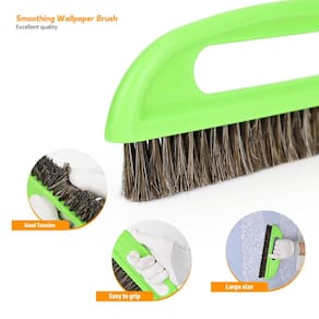 Kit de ferramentas de alisamento de papel de parede Ferramentas de papel de parede para descascar e colar papel de contato pendurado vinil backsplash película de janela - Kit de ferramentas de suavização de papel de parede versátil: adequado para aplicação de todos os tipos de papel de parede, ajuda você na aplicação de papel de parede, aparar teto, projetos de madeira ou rodapé, envoltório de vinil, película de janela ou filme de vidro - Pincel de alisamento de papel de parede de 25 cm: o pincel de papel de parede verde tem uma alça ergonomicamente projetada e uma grande quantidade de cerdas, mesmo em espessura e confortável de usar, o que é um bom ajudante para sua construção. E a alça pode ser pendurada para economizar mais espaço quando o trabalho estiver concluído. - Escova alisadora de revestimento de parede com ampla aplicação: Com suas cerdas largas e resistentes, cobre rapidamente grandes superfícies, tornando a remoção de vincos sem esforço e eficiente. Ideal para escovar paredes e alisar papel de parede, também adequado para remover sujeira antes do papel de parede. - Rodo de feltro grande para vinil e papel de parede: flexível e plano de vinil/papéis de parede e evita bolhas de ar rapidamente. O rodo de papel de parede tem diretrizes de medição em centímetros e centímetros, fácil de usar e economiza seu tempo. - Faca artesanal de precisão com lâminas extras de 5 peças: facas artesanais com design ergonômico e superfície de aderência confortável, e seu peso é equilibrado para excelente controle. Esta faca leve e manobrável é perfeita para cortes detalhados.