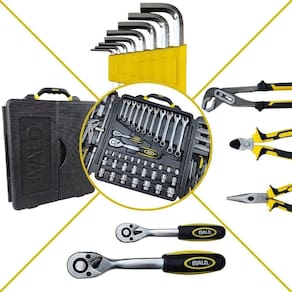 Composto por 110 peças cuidadosamente selecionadas, o kit foi desenvolvido para oferecer soluções completas para diversos tipos de serviços, desde os mais simples até os mais técnicos. Com uma maleta plástica reforçada e ferramental fabricado em aço cromo vanádio, reconhecido pela sua durabilidade superior, você terá em mãos uma combinação perfeita entre resistência e funcionalidade.