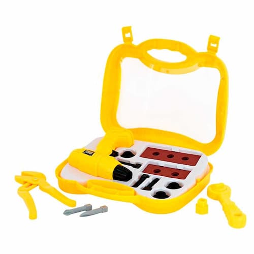 Kit de Ferramentas Infantil - DIY Tool - Maleta - DM Toys Brinque de construção com a maleta de ferramentas DIY Tool! Com uma parafusadeira que gira ao apertar o botão, acompanha diversos acessórios para deixar a brincadeira ainda mais divertida! Com maleta para levar suas ferramentas para onde quiser! Detalhes da Maleta DIY Tool: • Com vários acessórios para brincar de construção • A parafusadeira gira de verdade: basta encaixar a ponta desejada e apertar o botão para girar • As crianças despertam a imaginação enquanto brincam de profissão • Acompanha uma maleta com alça para guardar todas as ferramentas Informações: • Produto: Maleta de Ferramenta DIY Tool • Marca: DM Toys • Coleção: DIY Tool • Tipo: Maleta de Ferramentas de Brinquedo • Categoria: Faz de Conta • Subcategoria: Ferramentas Infantis • Conteúdo: - 01 parafusadeira de brinquedo - 01 ponta de fenda de brinquedo - 01 ponta de philips de brinquedo - 01 chave sextavada de brinquedo - 01 alicate de grifo de brinquedo - 02 placas de madeira de brinquedo - 03 parafusos de brinquedo - 03 porcas de brinquedo • Recomendação: para crianças a partir de 03 anos de idade Especificações: • Referência: DMT6614 • Código de Barras: 7899205966142 • Embalagem (C x A x L): 27 x 23.5 x 07 cm • Embalagem (Peso): 0.392 kg • Material / Composição: Plástico PP e PS • Registro: 003 909 / 2023 • Certificado: Órgãos Autorizados - OCP´S (Organismos de Certificação de Produtos) Aviso: • As imagens são meramente ilustrativas • Os pesos, tamanhos e medidas são aproximados • As cores e estampas dos produtos podem ter variações • As informações são de responsabilidade do fabricante ou fornecedor