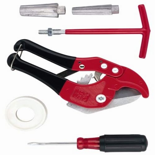 ferramenta de corte de tubos de PVC faz cortes limpos e sem rebarbas em tubos de PVC de até 1 polegada