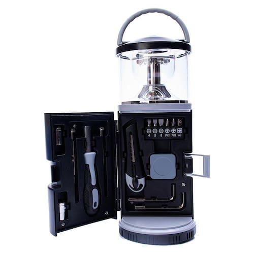 Use esta luz multifuncional como lanterna de acampamento, luz de trabalho portátil ou luz de emergência para falta de energia em casa. Você vai descobrir que é indispensável Junto com a lanterna, você também recebe um kit de ferramentas de 15 peças, para estar pronto para fazer reparos rápidos em casa ou no veículo. As mini ferramentas ficam na base da lanterna, que tem alça para carregar e é super prática As ferramentas de bônus que vêm com a lanterna incluem: 1 chaves de Precisão com ponta chata; 1 chave de precisão com ponta cruzada; 2 chaves Allen 1 Cabo de chave intercâmbiável; 3 pontas intercambiáveis de fenda; 2 pontas intercambiáveis estrela; 2 pontas intercambiáveis chave fixa; 1 mini trena; 1 Estilete A lanterna fornece luz LED alimentada por pilhas com 2 modos, vermelho brilhante e intermitente. Compacto, mas poderoso, é muito mais versátil do que uma lanterna. Requer 3 pilhas AA não inclusas . Material: Plástico ABS, aço, plástico, polipropileno e plástico emborrachado. Dimensões: 10cm diâmetro x 25cm altura Marca: Home Goods Ean: 7891790425578