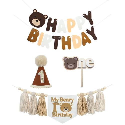 Este produto é um kit de festa de 1º aniversário que inclui um banner de cadeira alta com franja de serapilheira, um topo de bolo e um chapéu de cone de aniversário - Conteúdo da embalagem: um banner de guirlanda de borla; um banner de feliz aniversário; um chapéu de aniversário; um topo de bolo "um"; branqueamento de cores do produto da embalagem; combine para dar às pessoas uma sensação rústica - Excelente qualidade: o chapéu de aniversário é bem feito e é bonito e único; muito macio e confortável de usar; os banners de cadeira alta são feitos de borlas de tecido; alta qualidade; leve; fácil de pendurar; os topos de bolo são feitos de madeira - Fácil de usar: o banner tem corda suficiente em ambos os lados, você pode prendê-lo facilmente a uma cadeira alta ou parede; ou em qualquer outro lugar que você queira decorar; o banner de feliz aniversário precisa ser montado sozinho; basta amarrá-lo na corda na ordem das palavras - Ocasiões aplicáveis: Este pacote é perfeito para festas de aniversário de urso bebê; adereços de estúdio; chás de bebê e festas de esmagamento de bolos; aplicável a uma ampla variedade de ocasiões; também produtos reutilizáveis - Serviço pós-venda: Suporte à marca DCJHFJ ; nosso atendimento ao cliente estará sempre ao seu serviço