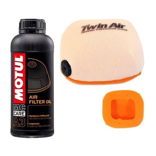 Kit de Filtro Ar Twin Air com Óleo Motul A3 1 Litro Air Filtre, Ktm 125 150 250 300 350 450, motos de trilha, motocross, enduro, veloterra, velocross, On road e off road.