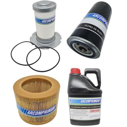 Kit de Filtros e 5L de Óleo Sintético 8000hrs Similares para Compressor Atlas Copco GA10 175 SP. O kit contém: