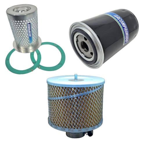 Kit de Filtros Similares para Compressor Techto Platinum TB15. O kit contém: * 01 Filtro Separador de Ar e Óleo * 01 Filtro de Óleo * 01 filtro de Ar