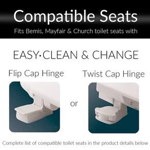 - Compatível: pode ser utilizado com todos os assentos sanitários Bemis, Mayfair e Church com dobradiças fáceis de limpar e trocar, dobradiças dobráveis ou dobradiças de tampa giratória; veja a lista completa de todos os assentos compatíveis abaixo