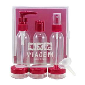 Este kit de 9 peças é ideal para transportar seus produtos de forma segura e prática durante suas viagens. Com sua embalagem impermeável, o kit não permite vazamentos, garantindo a segurança no transporte dos líquidos kit inclui: 01 Caixa Transparente 01 Frasco de Spray 60 ml 01 Frasco com Válvula Pump 60 ml 01 Frasco com Tampa Disk Top 60 ml 03 Potes 10 gramas/cada 01 Funil 01 Espátula Medidas: Comprimento: 14,5cm x Largura: 15cm x Altura: 5cm Material: Frascos: PS + Necessaire: PVC Ficha técnica - Cor: Vermelho escuro Ean: 4893884209029
