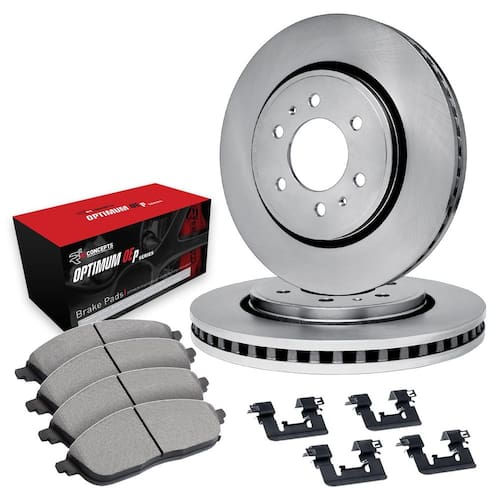 Freios e rotores dianteiros R1 Concepts | Hardware incluído | Kit de pastilhas e rotores de freio Dianteiro Optimum OeP | Serve para Nissan 720 1985; Nissan D21 1986-1994; picape Nissan 1995-1997