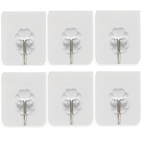 Cada gancho é equipado com um adesivo resistente, que garante fixação segura e duradoura em diversas superfícies, como azulejos, vidros, madeira e plásticos. Não requer furadeiras ou pregos, basta colar os ganchos na superfície desejada e pronto. A instalação é rápida, limpa e sem complicação.