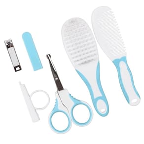 Com escova, pente, tesoura e cortador de unhas, é um item indispensável no enxoval do bebê.