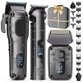 - Display LED e bateria de longa duração: mantenha o controle com um display LED inteligente que mostra a porcentagem da bateria e o nível de velocidade em um piscar de olhos. O design sem fio facilita o uso. Carregamento USB com suporte de voltagem universal. Os cortadores de cabelo podem durar até 4 horas para vários cortes após 3,5 horas de carga. O aparador de cabelo pode funcionar até 3 horas após 1,5 horas de carga. O barbeador de alumínio pode funcionar até 1,5 horas após 1,5 horas de carga.