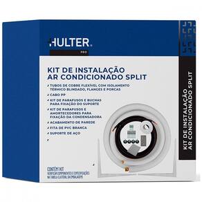 O Kit de Instalação é um Material de Instalação que não pode faltar aos Técnicos Refrigeristas. Traz mais agilidade e segurança na instalação de seu Aparelho de Ar Condicionado. De alta qualidade, vem pronto para realizar um serviço completo com os materiais devidos para instalação do seu aparelho. O Kit de Instalação Hulter é composto por: Tubo de Cobre 1/4" Tubo de Cobre 1/2" Cabo PP Suporte Split Fita PVC Massa de Calafetar Parafusos e Buchas