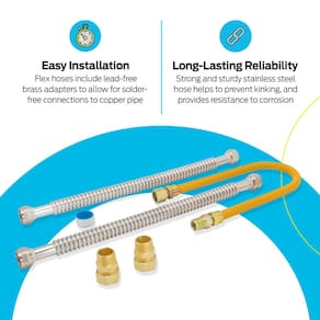 Eastman Kit de instalação de aquecedor de água a gás, mangueiras de aquecedor de água de aço inoxidável ondulado de 45 cm, conector de fornecimento de gás amarelo de 61 cm, 48280