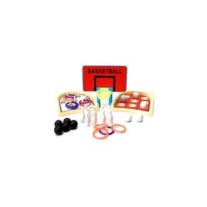 Itens Inclusos: 1 Mesa de jogo, 1 Jogo de argolas, 1 Jogo da velha, 1 Tabela de basquete, 1 Cesta de basquete, 5 Argolas vermelhas, 5 Argolas roxas, 10 Boliches, 5 Bolinhas brancas, 5 Bolinhas pretas, 1 Manual de regras