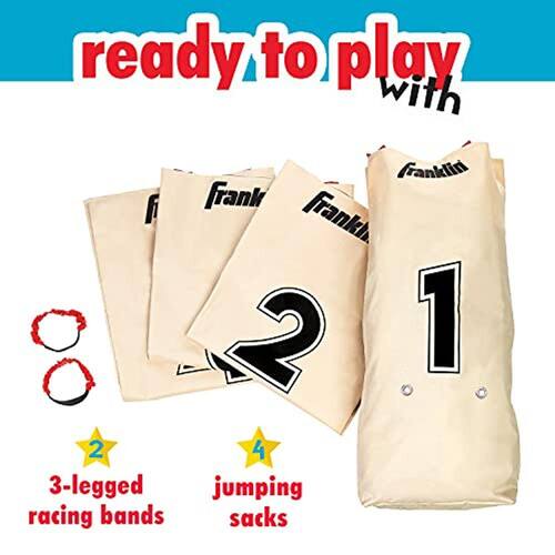 Saia e jogue com o Franklin Field Day 2-em-1 Potato Sack & 3-Legged Racing Kit! O complemento perfeito para qualquer festa no quintal, saco de batata e corrida de 3 pernas deixa seus amigos e familiares ativos de uma maneira divertida e emocionante! Desafie seus melhores amigos, tias, tios ou até mesmo seus filhos para ver quem é mais rápido! Usando trabalho em equipe, estratégia e algumas habilidades de velocidade, ambos os jogos envolvem todos, sendo fáceis de jogar e muito divertidos para todos! A corrida do saco de batata apresenta (4) sacos de batata altamente duráveis com alças costuradas para usar durante o salto. Suba em seu saco de batatas o mais rápido possível em direção à linha de chegada! A corrida de 3 pernas inclui (2) bandas de corrida para que 4 pessoas possam correr de cada vez. Amarre suas bandas de corrida a uma de suas pernas e a uma das pernas de seu parceiro e prenda usando o fechamento auto-aderente. Corra em sincronia com seu parceiro para chegar à linha de chegada o mais rápido possível! Este é o kit de jogo 2 em 1 perfeito para trazê-lo de volta aos seus eventos do Dia de Campo da velha escola.