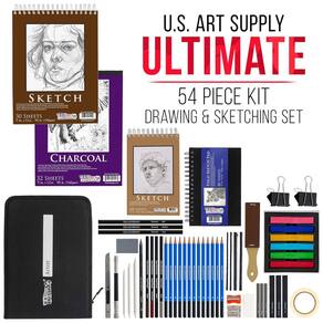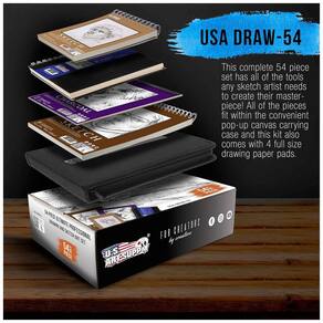 Conjunto completo de arte de desenho e esboço profissional de 54 peças que inclui todas as ferramentas e bloco de desenho de que você precisa para criar esboços incríveis O estojo de transporte com zíper possui todas as ferramentas convenientemente zenadas em um organizador pop up elevado, proporcionando fácil acesso a elas