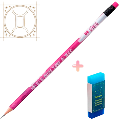 Kit de lápis preto grafite HB e Borracha Tris Signo Gêmeos