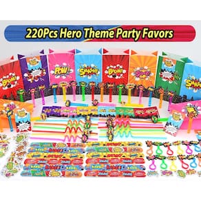 - 208 peças de lembrancinhas de festa de aniversário de heróis, suprimentos e decorações – sacos de brindes, enchimentos de pinhata e presente para festas infantis