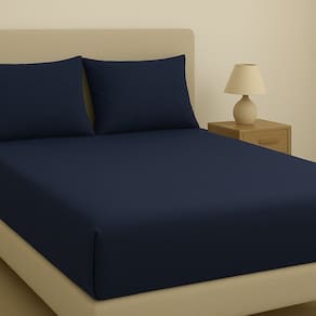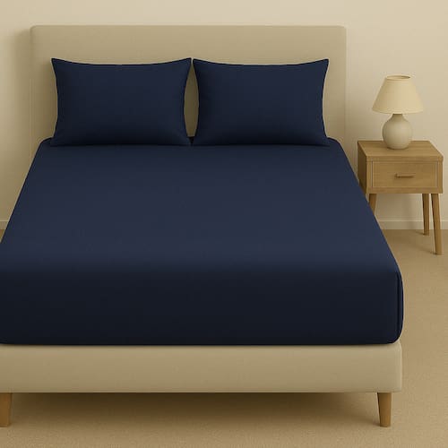 Kit De Lençol Malha Sofee e Par De Fronha 100% Algodão King 193x203cm Azul Escuro -