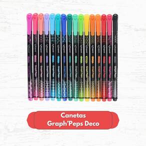 Contém 22 peças: - 16 canetas GraphPeps Deco ponta fina 0,4 mm - 06 marcadores Flex Pastel ponta flexível de 1 a 5 mm