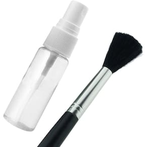 Kit Contendo: 1x pincel de limpeza para elementos ópticos vidros e resinas 1x fluido desengordurante de limpeza para elementos ópticos não use no sensor da câmera 1x Soprador de borracha para remoção de poeira e partículas maiores 1x lenço de fibra eletrostático para limpeza de elementos óptico
