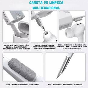 Para a limpeza dos fones, kit possui em uma extremidade cabeça de silicone, ponta e escova de cerdas macias remove manchas nas fendas e resíduos teimosos. A cabeça do silicone pode ser usada para limpar o compartimento de carregamento dos auscultadores, a ponta de limpeza pode ser usada para limpar a saída sonora dos fones de ouvido e a escova de alta densidade é perfeita para limpar poeira de pequenos orifícios, teclados e fendas de monitores.