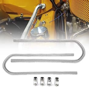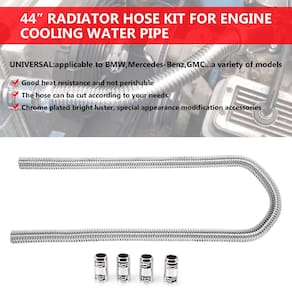 " Características do produto: Mangueira flexível do radiador feita de aço inoxidável de altíssima qualidade A mangueira inoxidável não vai soprar ou apodrecer como uma de borracha. Estas mangueiras podem ser formadas simplesmente dobrando-as na forma desejada, o design flexível elimina o incômodo de encontrar uma mangueira de borracha com as dobras certas. A mangueira pode ser cortada no comprimento desejado. 100% novo O pacote inclui: 2 x mangueira de água de arrefecimento do radiador de aço inoxidável de 44 polegadas 4 capas de tampa (bonés de alumínio cromado), 4 * redutores 5/8" 4 * mangas de borracha 3/4" 8 braçadeiras de mangueira Especificações: Cor: preto/prata Material da mangueira: aço inoxidável Ajuste: Universal O kit contém pontas suficientes para 2 comprimentos de mangueira. Braçadeiras, mangas, redutores, tampas incluídas. A instalação profissional é altamente recomendada. (instruções não inclusas) Observação: Considere uma diferença de 1 a 3 cm devido à medição manual e, devido à exibição diferente e luz diferente, a imagem pode não refletir a cor real do item. Etapas de instalação: Retire a mangueira de borracha OE. Marque o comprimento para suas necessidades. Corte a mangueira de aço inoxidável com cuidado. Adicione as tampas cromadas corretamente. Aqui está a peça finshed instalada. Desfrute de uma nova mangueira para sua condução diária. " - ?Aplicação?Mangueira de aquecedor universal, pode ser usada para aplicações de 0,9 cm e 1,5 cm - ?DIMENSÕES?Comprimento da mangueira do aquecedor de aço inoxidável (comprimento ajustável): 112 cm, diâmetro do orifício: 1,5 cm - ?AJUSTÁVEL?A mangueira flexível é ajustável e equipada com um grampo de tubo ajustável, que é propício para a conexão da interface e evita a ocorrência de desalinhamento - ?Material?Feito de aço inoxidável de alta qualidade, 100% de detecção de garantia de qualidade, flexível e ajustável, não é fácil de corrosão e dispersão, acessível, fácil de instalar - ?A embalagem inclui?Mangueira de aquecedor de aço inoxidável de 111 cm x 2,4 tampas de extremidade (tampas de alumínio cromado), 4 redutores de 1,5 mm (5/20.3 cm), 4 mangas de borracha e 8 braçadeiras de mangueira