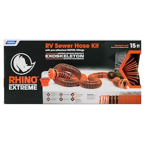 Camco Manufacturing 39861: Kit de mangueira de esgoto Rhinoextreme de 15 pés com encaixe giratório, 4-N-1, cotovelo e tampas
