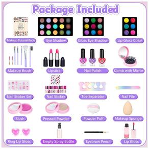 Kit de maquiagem sem bagunça e de tamanho grande: O tamanho da caixa de maquiagem é 19 x 16 x 16 centímetros. Quando totalmente aberto, o comprimento é de 36 centímetros! Incluindo um total de 62 unidades de cosméticos e acessórios. Coroa e joias são as preferidas de toda princesa! Desde fantasias, festas e atividades, ou apenas a hora da princesa, há muitos utensílios de maquiagem nesta caixa de maquiagem com alça.