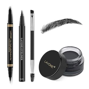 - ?Lista de pacotes?: O kit de maquiagem de sobrancelha LAVONE inclui lápis de sobrancelha (cor: preto), pomada de sobrancelha (cor: preta), delineador (cor: preto) e pincel de sobrancelha de ponta dupla, com uma bolsa com zíper para qualquer lugar. Lápis de sobrancelha para homens e mulheres.