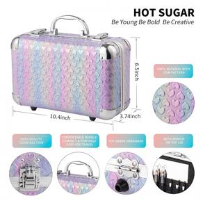 O kit de maquiagem tudo em um da Hot Sugar em design Coração Roxo oferece 59 itens essenciais organizados em uma maleta reutilizável com espelho integrado e alça superior para transporte. Inclui 27 sombras para olhos, 4 blushers, 2 gloss labial, 4 batons, 10 pincéis, 2 lápis labial e 2 lápis para olhos. A estrutura compacta facilita o armazenamento de cosméticos, ferramentas de maquiagem e acessórios, com paletas mini removíveis para uso individual.