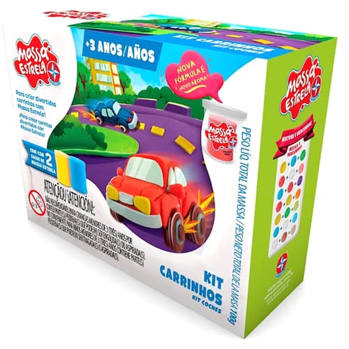 para Criar Divertidos Carrinhos com Massa Estrela! Vem com 2 Formas e Carrinhos e 2 Sacos de Massa com 50g.