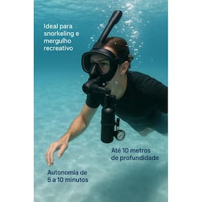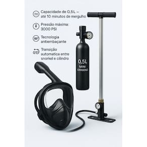 Mergulhe com Liberdade: Kit Completo de Mergulho com Máscara + Cilindro + Bomba de Ar Descubra uma nova maneira de explorar o mundo subaquático com este kit completo de mergulho, ideal para quem busca aventura com segurança e praticidade. Esse combo foi desenvolvido para unir o melhor do snorkeling e do mergulho recreativo, oferecendo liberdade de movimento e respiração confortável até mesmo a 10 metros de profundidade. O Que Está Incluso: Máscara facial de mergulho com snorkel seco integrado Cilindro de oxigênio portátil de 0,5L alumínio de aviação 6061 Bomba de ar manual de alta pressão Acessórios extras: chave de manutenção + peças reserva Principais Benefícios: Respire de forma natural e segura sob a água Visão panorâmica de 180 com lente antiembaçante Pressão de até 3000 PSI / 200 BAR com manômetro embutido Sistema de conexão rápida 360º entre cilindro e máscara Recarregável em minutos com bomba manual incluída Ideal Para: Snorkeling com cilindro de apoio Mergulho leve em até 10 metros Prática de esportes aquáticos Explorações costeiras e em piscinas profundas Situações de treino e segurança Importante: O cilindro oferece autonomia de 5 a 10 minutos, variando de acordo com a profundidade e o ritmo respiratório. É indicado para uso recreativo e esportivo, não substituindo cilindros de mergulho com tanque dorsal. Viva experiências únicas com confiança e tecnologia ao seu lado Adquira agora o seu kit completo e transforme cada mergulho em uma nova história Marca: Não Informado Ean: 7901610039561