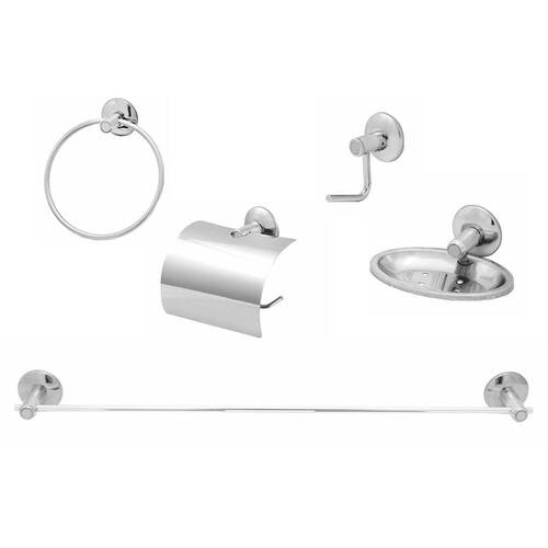 O Kit de acessórios da Metais Rainha é ideal para manter o seu banheiro organizado e funcional, com 5 peças em alumínio polido de qualidade, é perfeito para o uso diário e se harmoniza em qualquer ambiente.